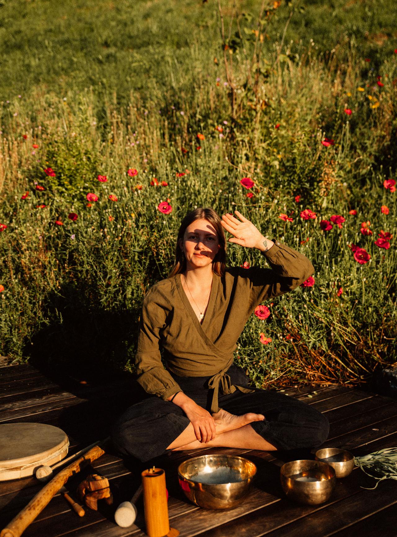 Oder wie wäre es, den Morgen mit einer Tasse Tee in der Stille zu beginnen, den Blick in die Natur gerichtet? Bewusst den Tee zu trinken, die Wärme der Tasse in deinen Händen zu spüren, den Duft der ätherischen Öle einzuatmen und die Wärme in deinem Körper Schluck für Schluck zu genießen. Mein Lieblingsplatz dafür ist das Yoga-Podest, umgeben von Blumen, mit Blick in die Berge.