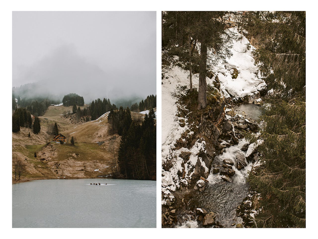 Da wir leider kein Glück, also keinen Schnee hatten, schlüpften wir in unsere Wanderschuhe und starteten direkt von der Hütte aus in unser Abenteuer. Da wir bereits auf 1100 Metern Höhe waren, ließen wir das Auto stehen und erkundeten die Gegend zu Fuß. Unsere Wanderung dauerte insgesamt etwa zweieinhalb Stunden und führte uns zum nahegelegenen Seewaldsee. Wir wanderten durch den Wald, entlang eines Wasserfalls, stets mit einem herrlichen Blick auf die Berge und die atemberaubende Natur. Während der Wanderung blieben wir oft stehen, um die Aussicht zu genießen und zu beobachten, wie die Wolken über die Wälder zu den Bergen hin aufstiegen.