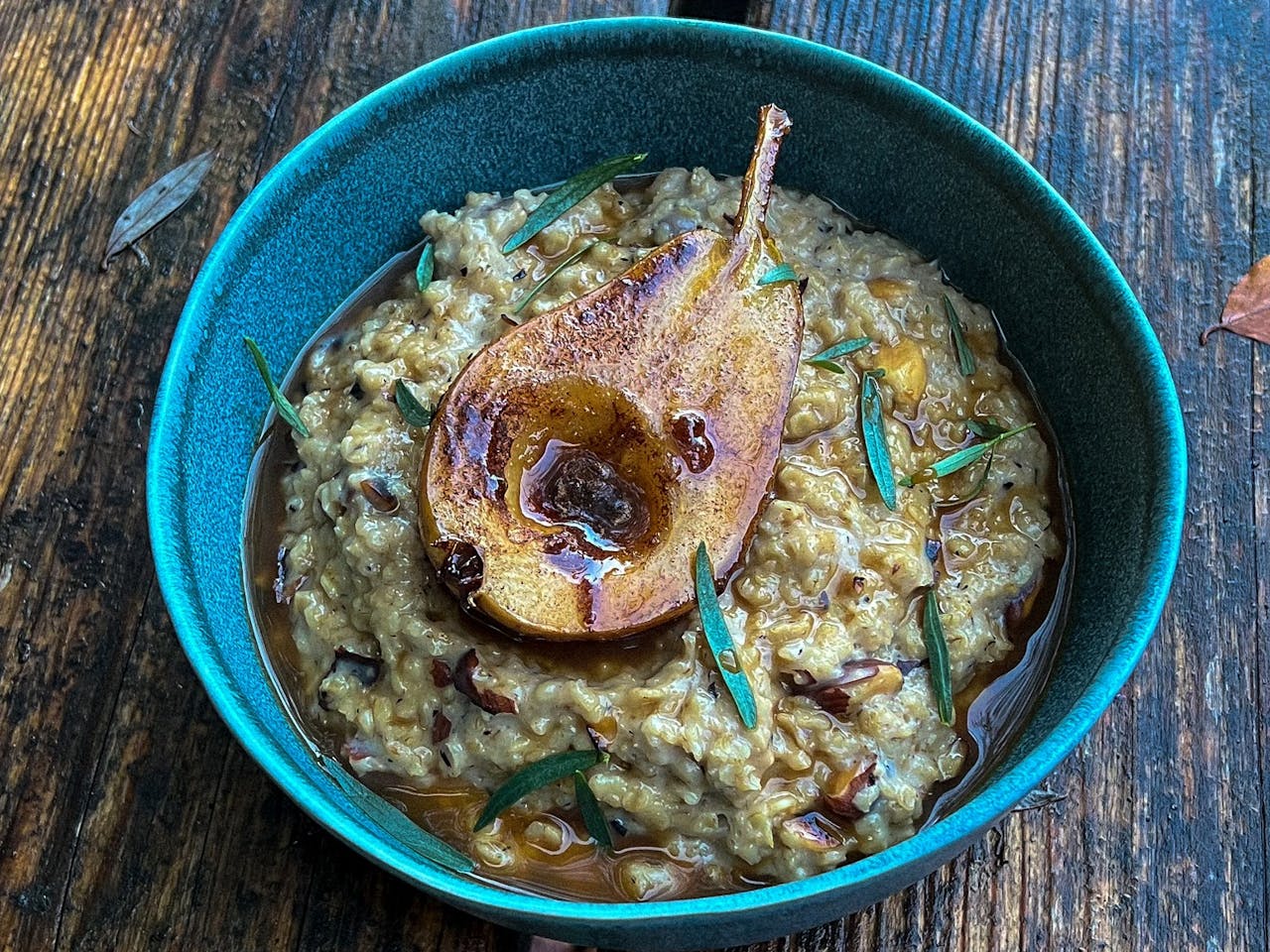 Tipp: Für dieses Rezept kannst du anstatt der Haselnüsse auch auf andere Nüsse oder auch Kerne zurückgreifen, wie zum Beispiel Kürbiskerne. Anstelle der Birne könntest du natürlich auch einen Apfel karamelisieren.