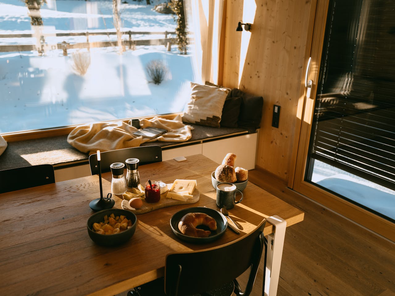 Morgens in der Cabin aufwachen und durch das Dachfenster in den strahlend blauen Himmel schauen. Das Dachfenster öffnen, frische Luft hineinströmen lassen und mit dem ersten Kaffee im Bett den Vögeln beim Singen zuhören. Sobald du am Frühstückstisch sitzt, blinzeln die ersten Sonnenstrahlen herein. Du genießt frische Brötchen mit lokalen Produkten vom Bauern nebenan. Danach geht es auf den Berg. Die Bedingungen sind gut. Alle Pisten und Bahnen haben geöffnet und die ersten Schwünge machen einfach richtig Freude!