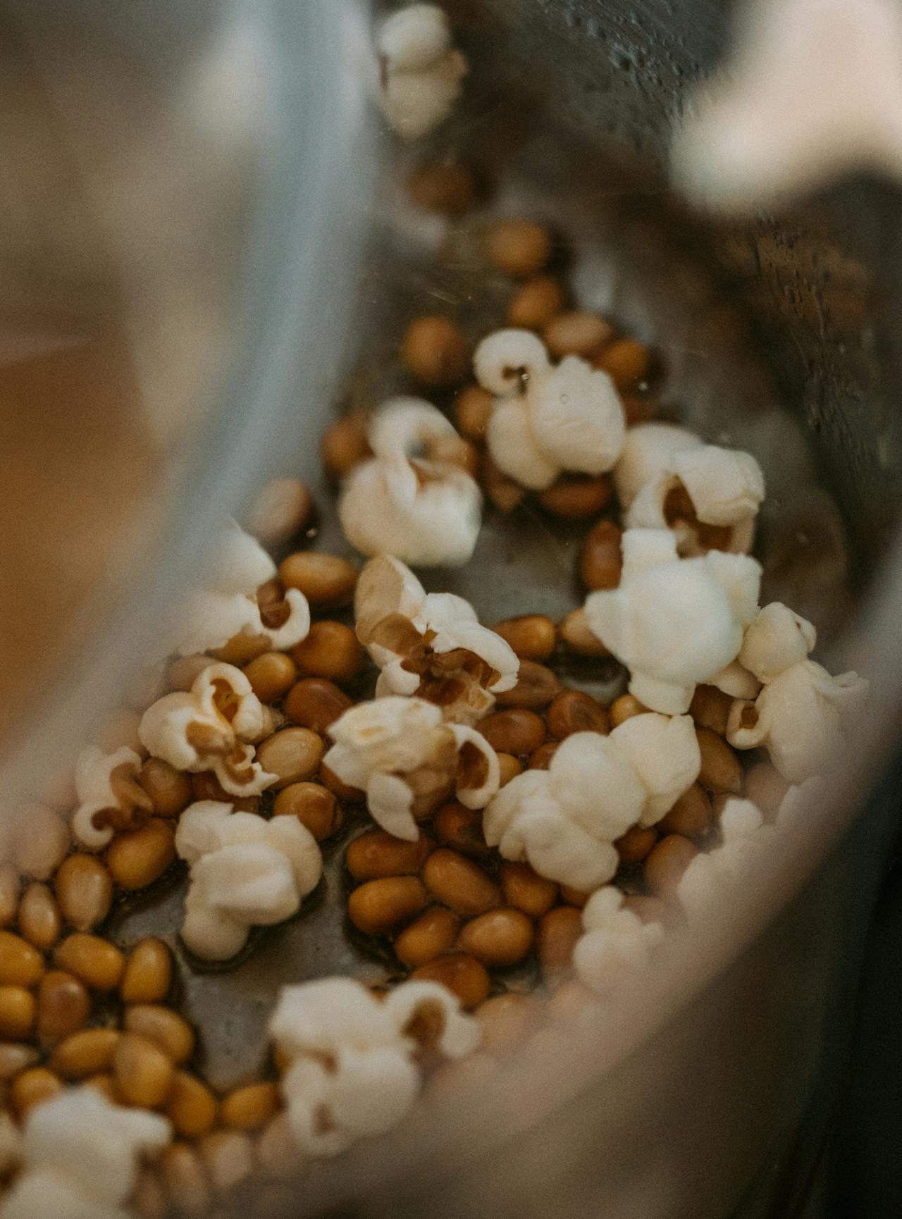 1. Mais und 2 EL Butterschmalz in einen Topf geben, Deckel schließen und bei mittlerer Hitze poppen lassen.