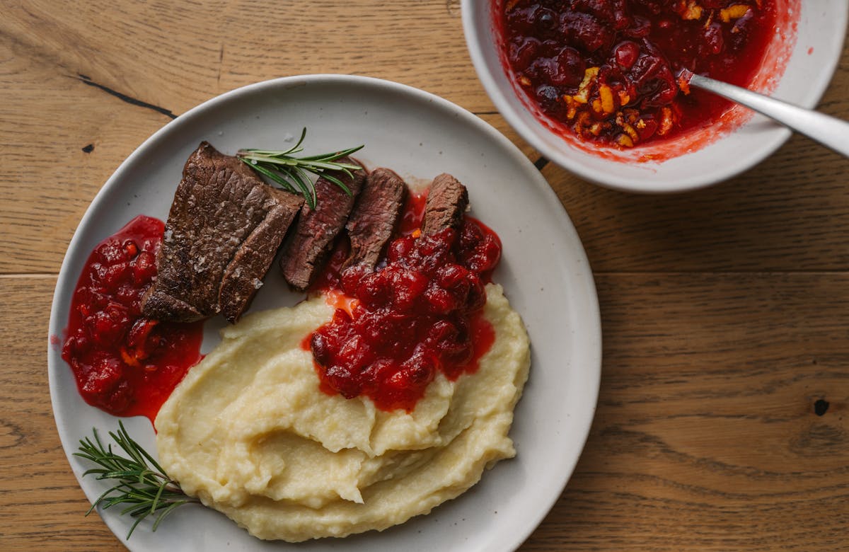Ein echtes Winter-Comfort-Food: Zartes Steak, fruchtige Cranberry-Sauce und ein cremiger Kartoffel-Pastinaken-Brei. Nährend, wärmend und perfekt für gemütliche Abende in der Cabin – mit vielen Zutaten direkt aus dem Litzi Hofladen auf dem Grundstück.