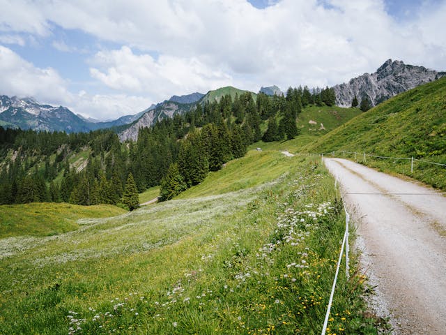 Bereits aus dem Panoramafenster der Cabin im Walsertal kann man die gegenüberliegende Seilbahn entdecken, die dich nach einer kurzen aussichtsreichen Gondelfahrt zur Bergstation Sonntag-Stein bringt. Von dort startet die Wanderung zur Breithornhütte oder wer mag bis zur Alpe Laguz. Gleich zu Beginn hat man zwei Optionen zum ersten Etappenziel der Alpe Unterpartnom zu gelangen – entweder ganz bequem über die asphaltierte Straße entlang des neu geschaffenen Klangweges oder den etwas steileren Pfad, der unterhalb des Sesselliftes nach oben führt. Von der Alpe Unterpartnom führt nun ein entspannter Weg mit wenigen Höhenmetern vorbei an blühenden Sommer- und Weidewiesen mit grasenden Kühen und Pferden zur Breithornhütte am Fuße des gleichnamigen Berggipfels. Mit 1.680 m ist sie die höchstgelegene Hütte im Gebiet Sonntag-Stein und wartet neben frischen regionalen Produkten zugleich mit einer fantastischen Aussicht auf dich.