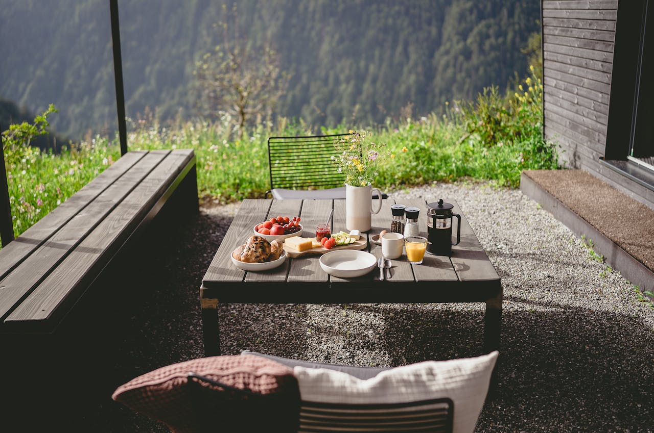 Frisch gestärkt – ob beim Frühstück in der Cabin oder im morgendlichen Sonnenschein auf der Terrasse – heißt es nun also nur noch die passende Route raussuchen, Wanderstiefel schnüren und los. Und das Große Walsertal hält so einiges bereit – auch hier gilt wieder: alles kann, nicht’s muss. Wie man mag, kann man eine lange und anspruchsvolle Tagestour, eine aussichtsreiche Halbtagestour oder eine entspannte Runde zum Sonnenuntergang planen.
