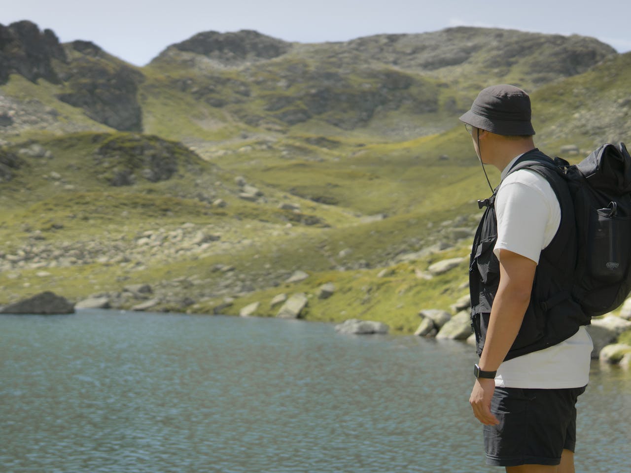 Die zweite Etappe führte uns über größtenteils felsige Wiesen zu den smaragdgrünen Alpguesseen. Die Erfrischung nahte! Wir machten Rast am Bergsee und hielten die Füße ins eiskalte Wasser. Einige Mutige waren sogar ganz kurz komplett im Wasser. Dazu zählen wir uns leider nicht haha. Wir haben einfach den Moment genossen, die Sonne im Gesicht gespürt, kleine Wasserwellen gehört und neue Energie für den Rest des Weges getankt.