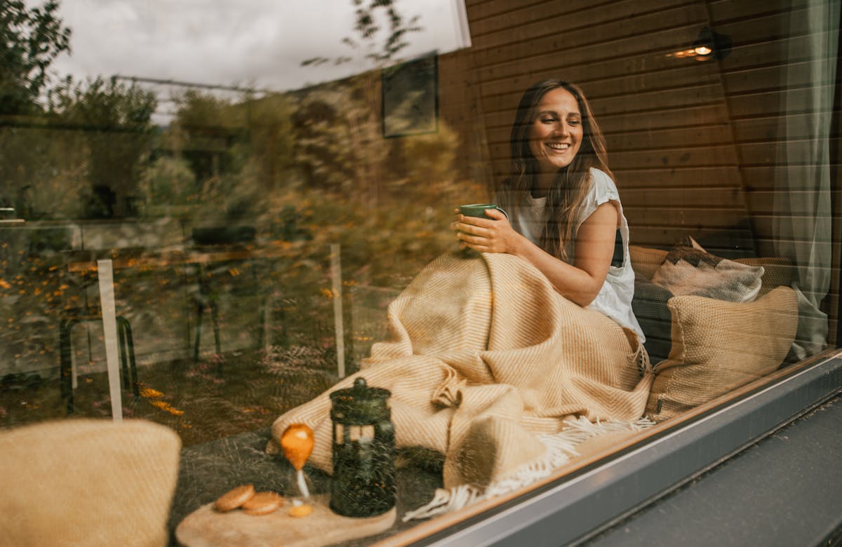 Anschließend machten wir uns mit einem leckeren Kaffee an die Arbeit und konnten unserer Kreativität freien Lauf lassen, Träumen und Ideen sammeln. Der regnerische Vormittag brachte eine gemütliche Atmosphäre und Ruhe mit, wobei die minimalistische Einrichtung der Cabin unseren Gedanken Raum gegeben hat. Alles ist mit Bedacht und Liebe zum Detail eingerichtet. Es fehlt an nichts und dennoch wirkt alles an der Cabin sehr beruhigend.