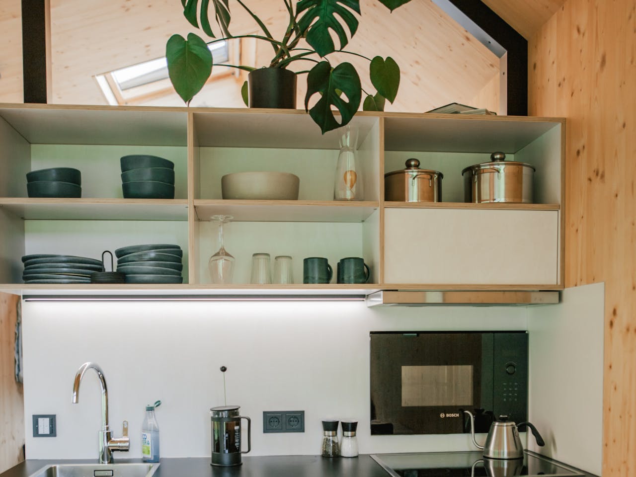 Nachdem wir nach unserer Ankunft unsere Sachen im großzügigen Stauraum verstaut hatten, nutzten wir den Nachmittag, um richtig anzukommen. Nach einem kleinem Spaziergang im Ort haben wir es uns mit einem Kaffee auf der gemütlichen Sitzbank vor dem großen Fenster gemütlich gemacht und einfach nur die Ruhe und den Ausblick genossen: Im Vordergrund die bunte Blumenwiese, im Hintergrund die nahegelegenen Berge. Die offene Küche lud uns anschließend ein, ein neues Rezept auszuprobieren und den Abend somit gemütlich ausklingen zu lassen.